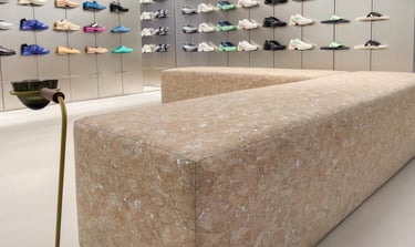 FINAL TEXTURE: The material is sanded and treated to create a soft, leather-like feel. Unlike animal leather, it is naturally waterproof, fire-retardant, and hypoallergenic without additional chemical coatings.