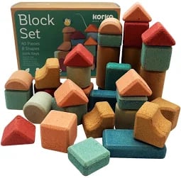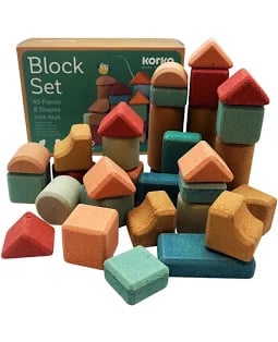 A variety of baby items are made from cork, including play mats, building blocks, and bibs, all valued for being a non-toxic, sustainable, and hypoallergenic material.
